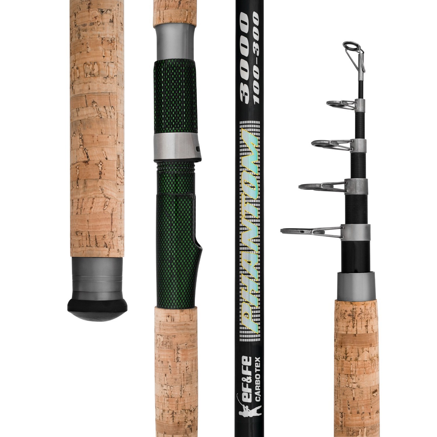 Effe Phantom teleskobik olta kamışı, tatlı su ve deniz avcılığı için özel olarak geliştirilmiştir. Kompakt kapalı boyu sayesinde taşınabilirliği yüksek olan bu model, üstün karbon güçlendirmeli mantar sapı ve paslanmaz halkalarıyla sağlam bir yapı sunar. Hafifliği ve sağlamlığı bir arada sunan Phantom, av sırasında konforlu tutuş ve uzun ömürlü kullanım sağlar.